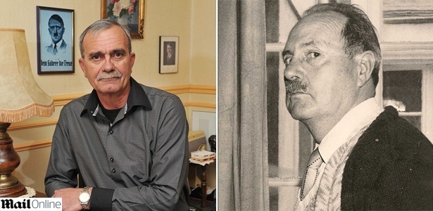 Philippe Loret (esq.) acredita ser neto de Adolf Hitler. Na direita, imagem de seu pai, Jean-Marie Loret
