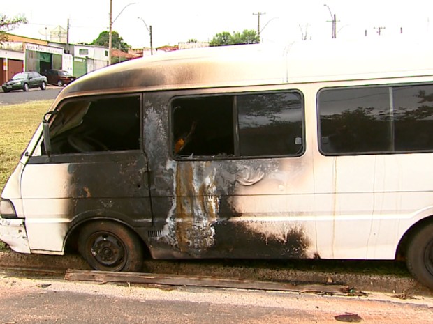 Van teve a lateral queimada e ficou completamente destruída por dentro (Foto: Reginaldo dos Santos/EPTV)